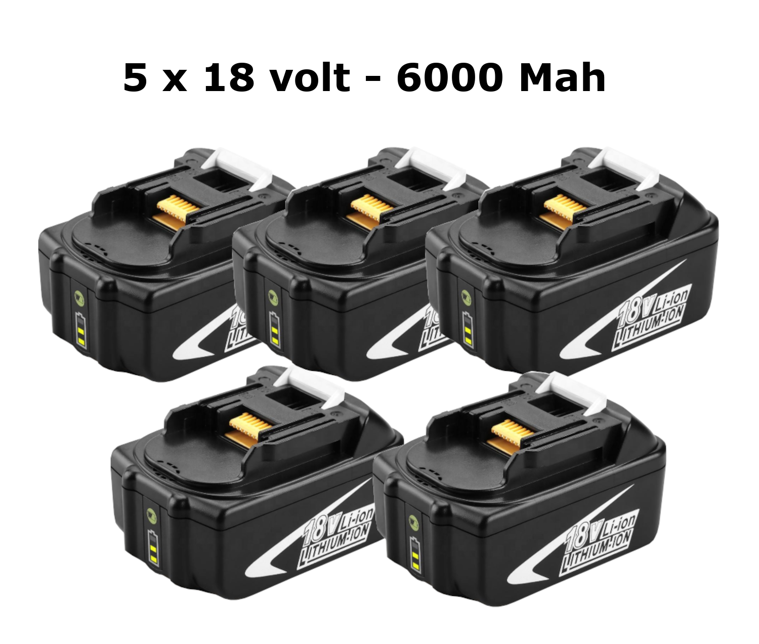 Aanbieding: 5 x Accu voor Makita gereedschap – 18 Volt – 6000 Mah