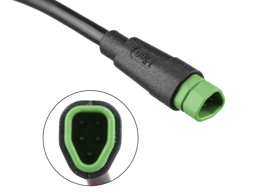 de verbindingsstekker van UART is een ronde 5-pins female connector, bij CANBUS is dit een hoekige 5-pins male connector