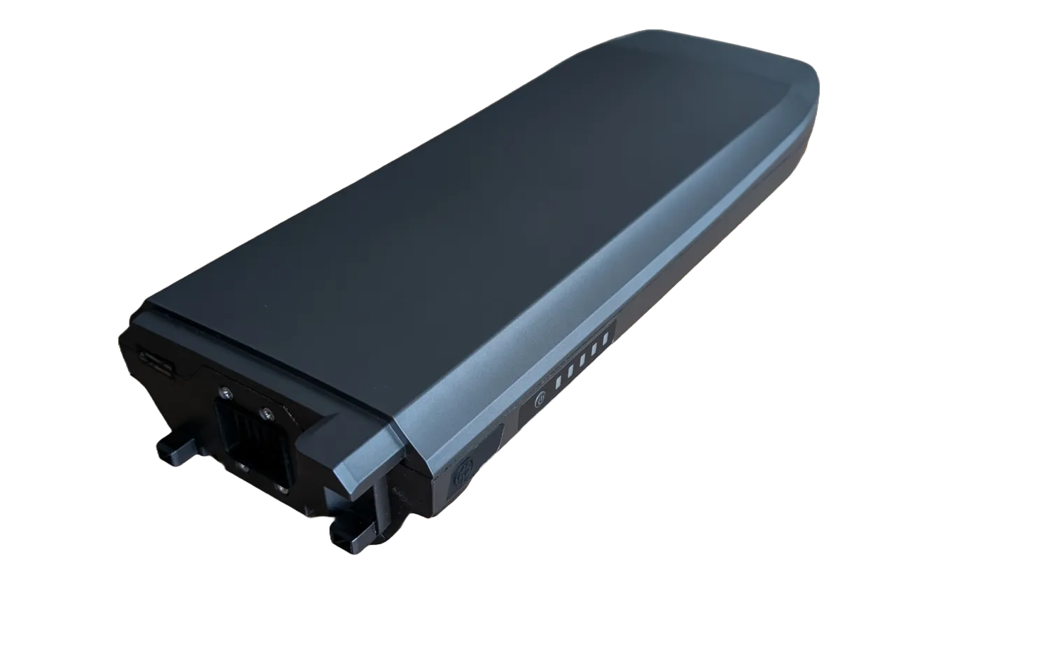 De Vogue Accu 13 Ah Grijs past onder de bagagedrager van uw elektrische fiets.
